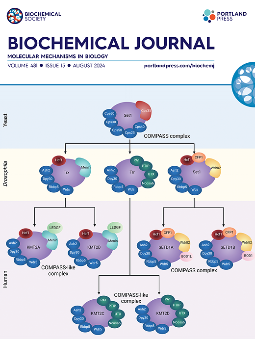 KMT2 review (and schematic from my Ph.D. thesis) makes the cover of Biochemical Journal August 2024!